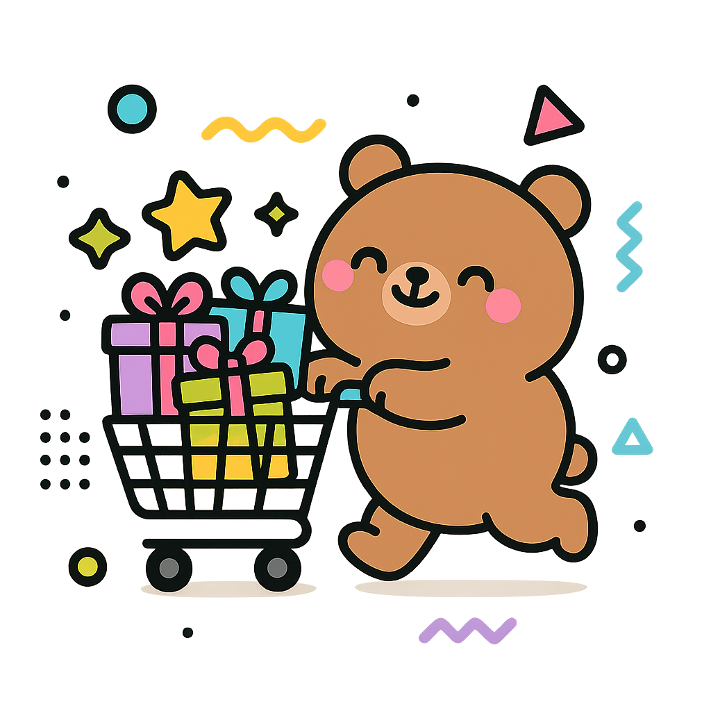 Illustration of Bear adding gifts to cart